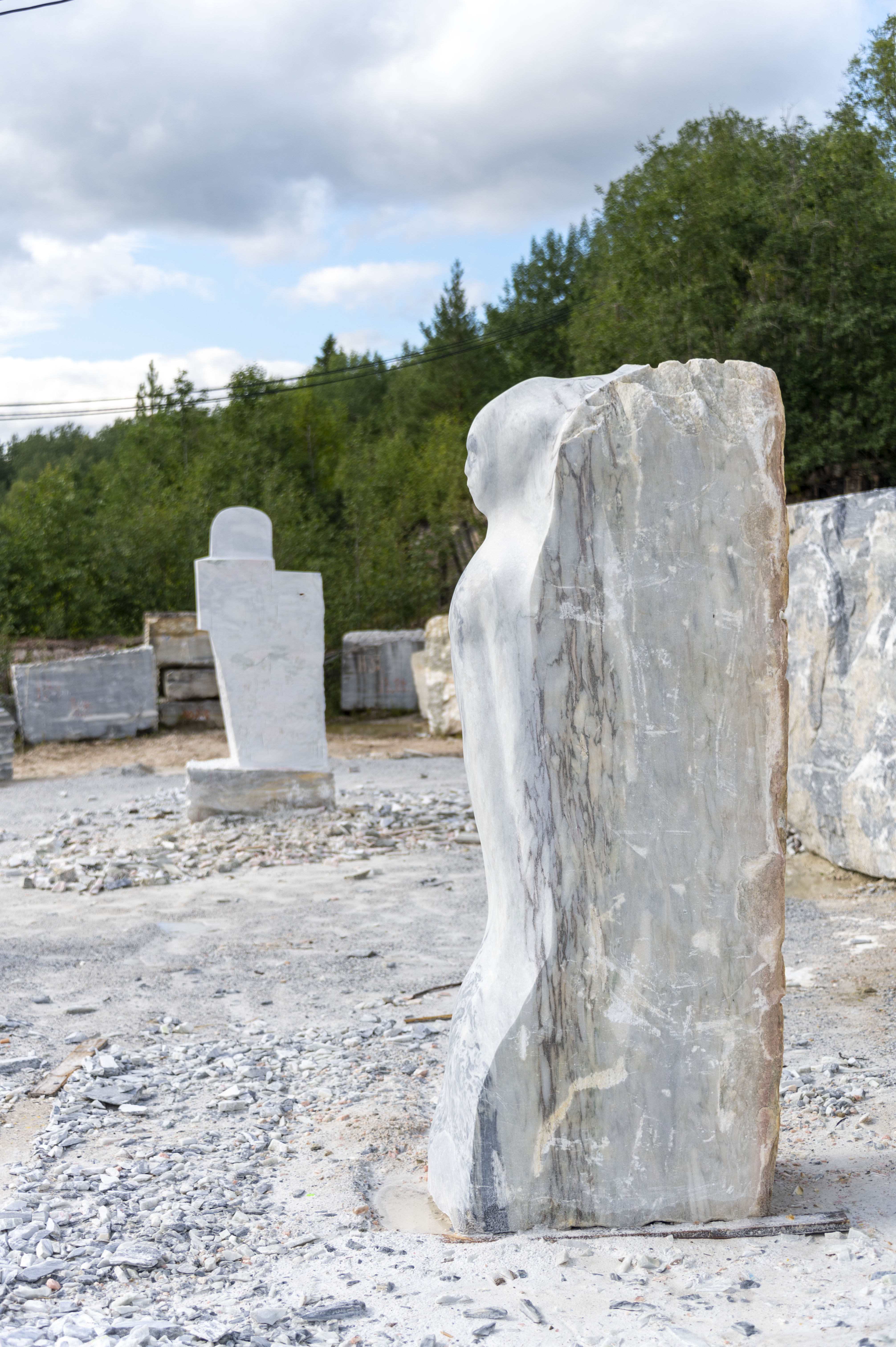 Fauskemarmorskulpturer står nå i Fauske Marble by Moser bruddet i påvente av plassering på Fauske.